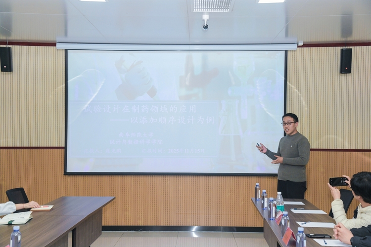 交流环节中,鲁南制药集团负责人冯总分享了企业的研发历程、应对策略与未来规划,研究人员详细讲述在研发中攻坚克难的过程。参会师生结合自身研究,分享了统计模型在药物研发周期缩短、临床试验设计优化等方面的潜在应用,引发企业技术团队的浓厚兴趣。