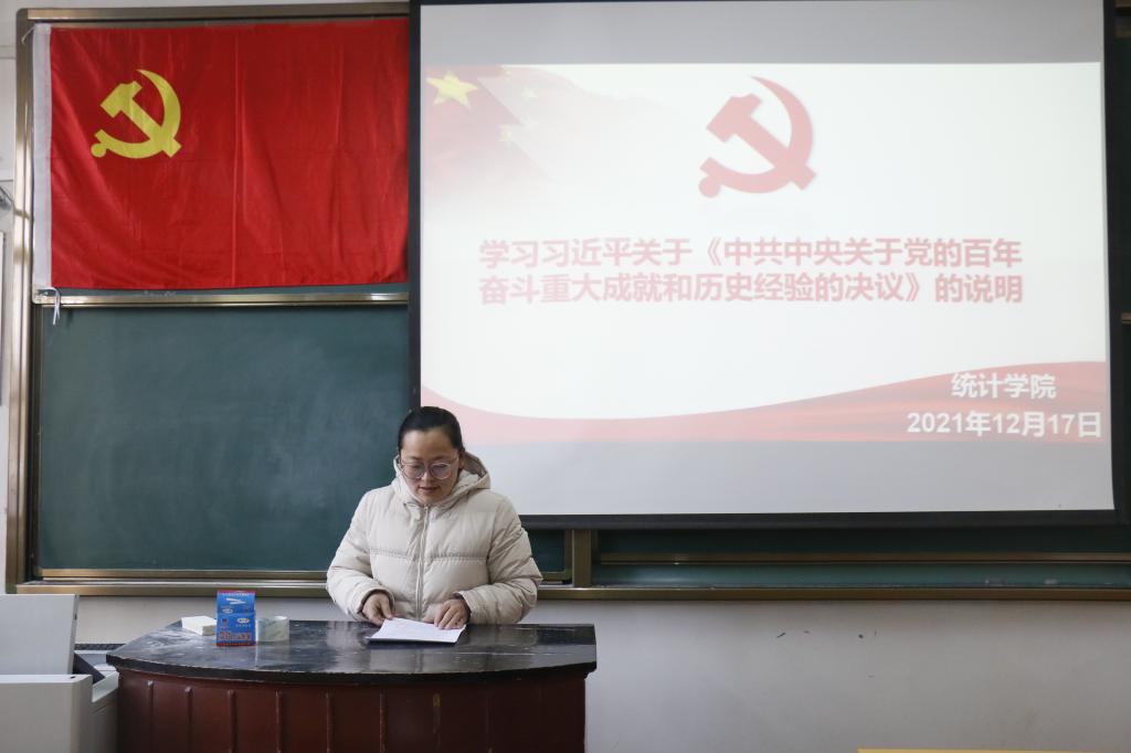 教室召开了学习关于《中共中央百年奋斗重大历史成就和历史经验的决议》会议。本次会议由团委书记李宴美领学,统计赌博网站