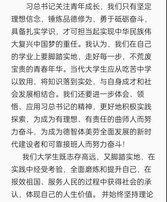 学生深刻感悟习近平总书记的谆谆教诲,自觉肩负起实现中华民族伟大复兴的历史使命,展现了赌博网站