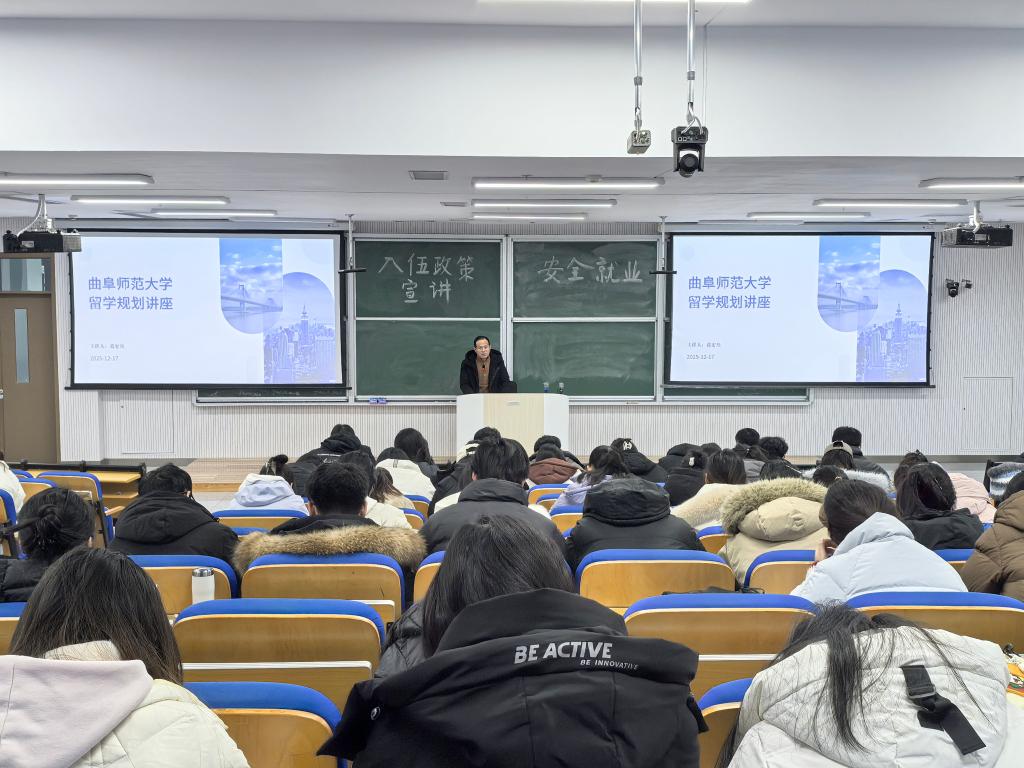 随后,开展征兵入伍专项宣讲,详细介绍毕业生入伍政策、报名流程、优抚待遇及职业发展优势,鼓励符合条件的同学响应国防号召、投身军旅建设。国际交流合作处葛老师带来留学申请专题讲座,围绕留学时间规划、材料准备、院校及专业选择等实用内容进行分享,为有意向出国深造的同学提供针对性指导。